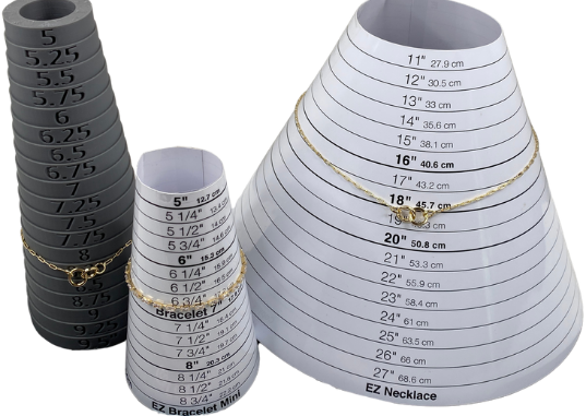Each piece is hand-measured with specialized sizing tools for accuracy of inner circumference —not just the length laid flat against a ruler. We round to the nearest 0.25 inch to ensure you get precise, reliable dimensions. We understand that different links and designs fit differently, so our measurements reflect real-world fit.