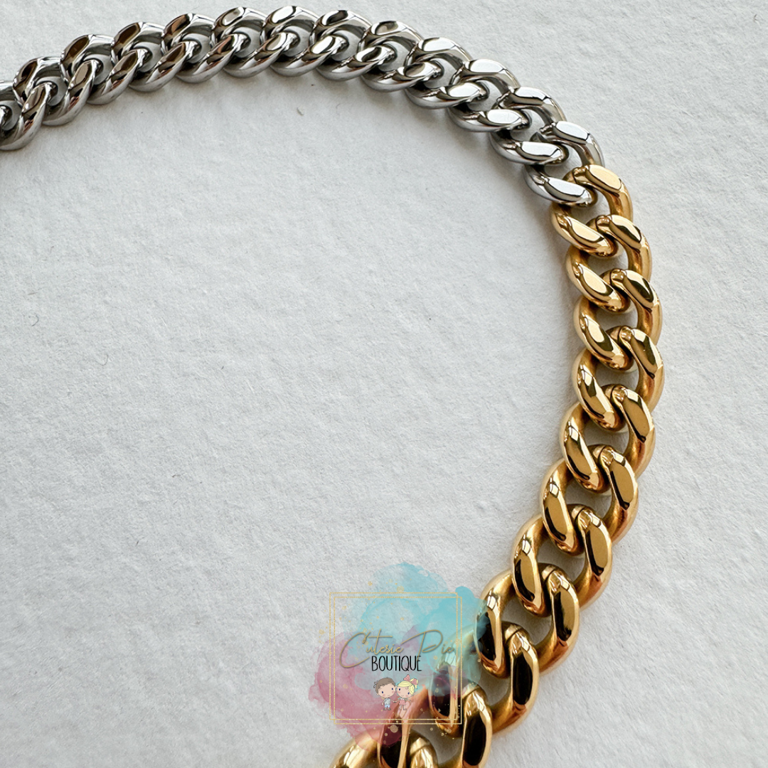 Perfect to complete any look! Bring in the best of both gold and silver with this 2-tone Cuteise Toggle Necklace