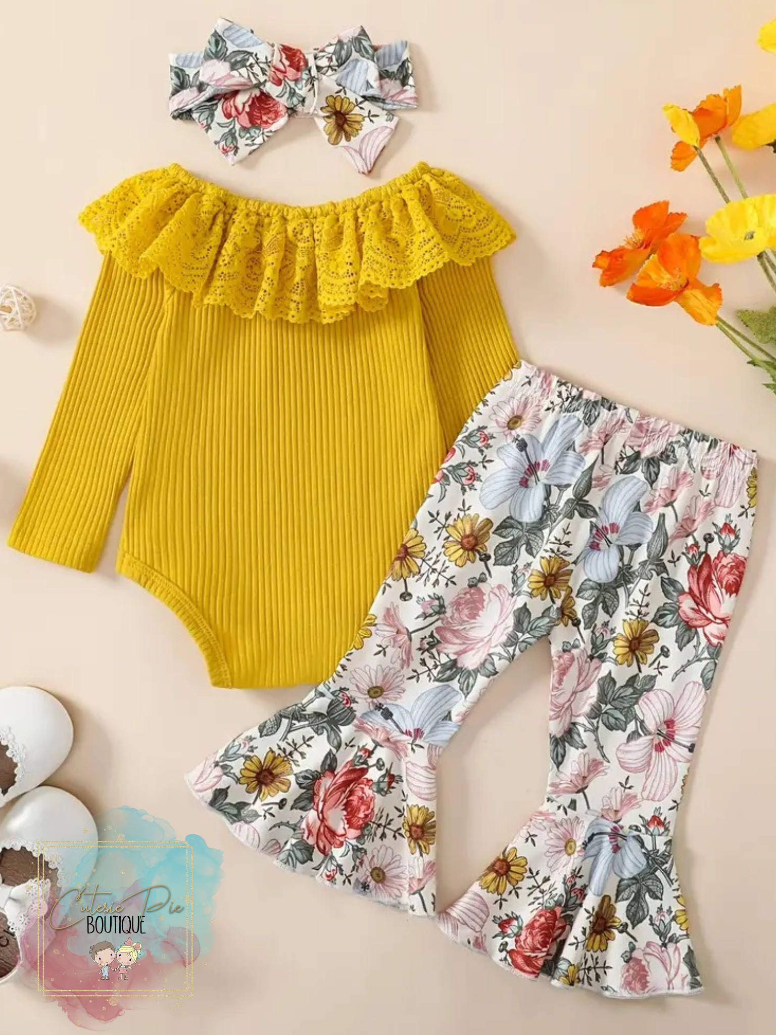 Baby Girls Lace Ruffle Onesie and Flared Pant