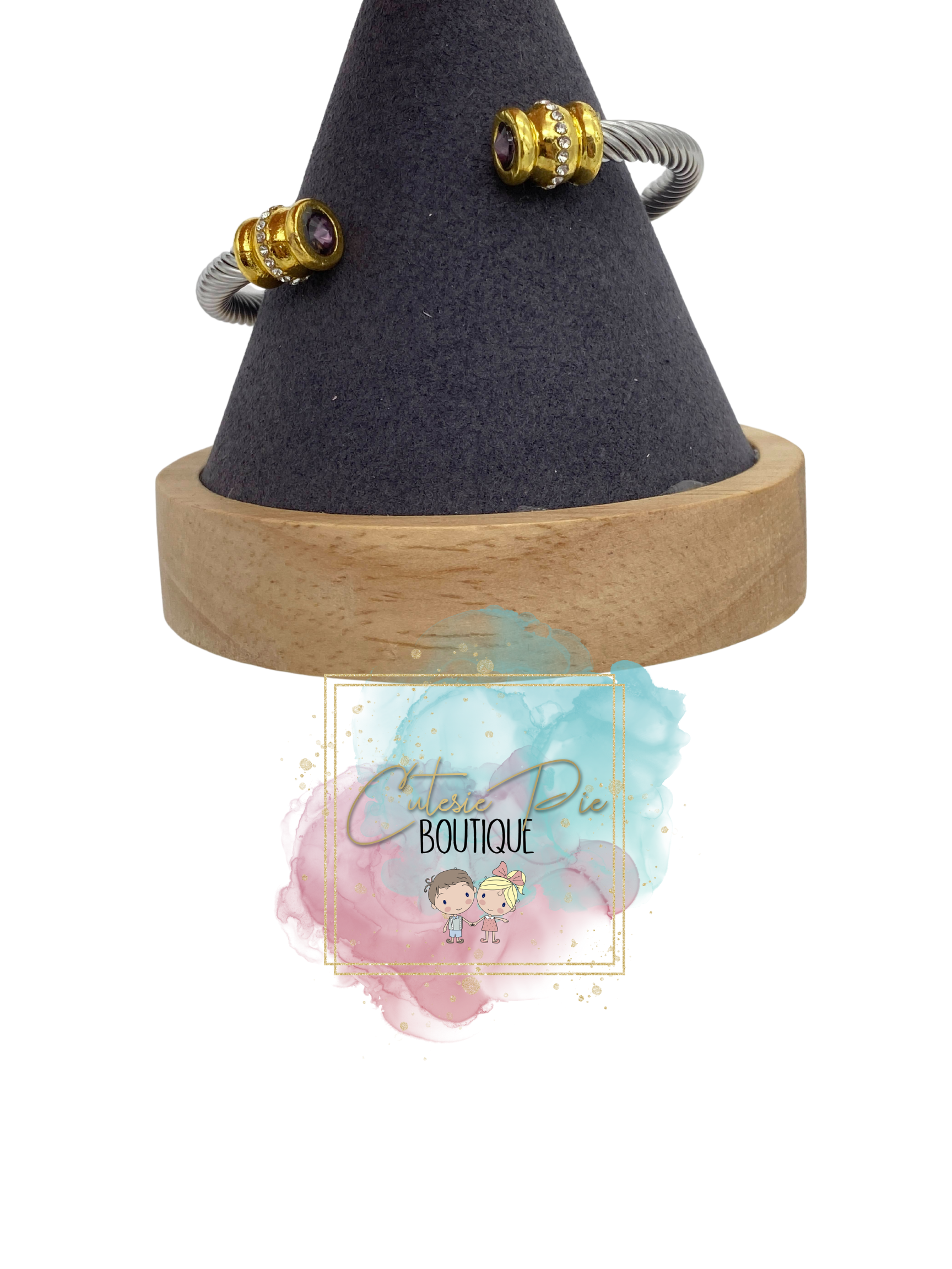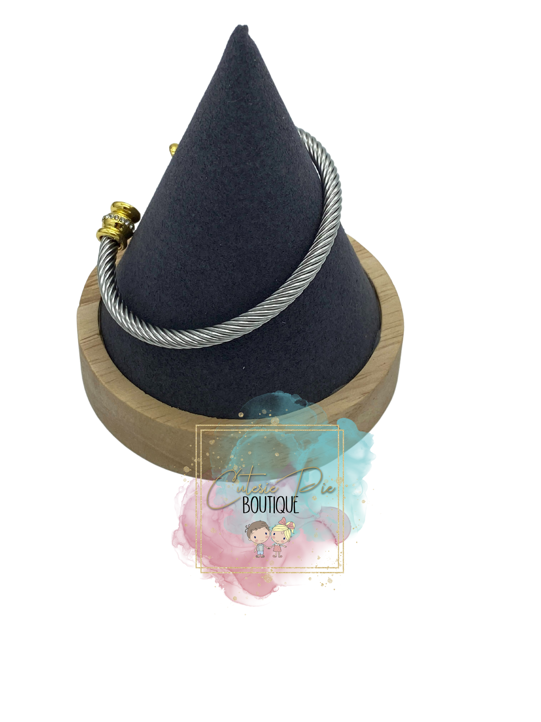 STAINLESS JEWELRY - Cable Wire Rhinestone Bangle / Bracelet