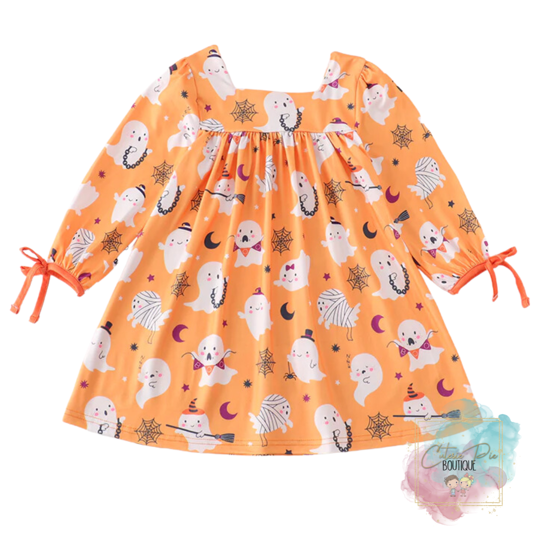 Perfect for a spooktacular night, this dress features a fun and festive ghost print that is sure to get you noticed by the ghost with the most. Get your boo-tiful look on!