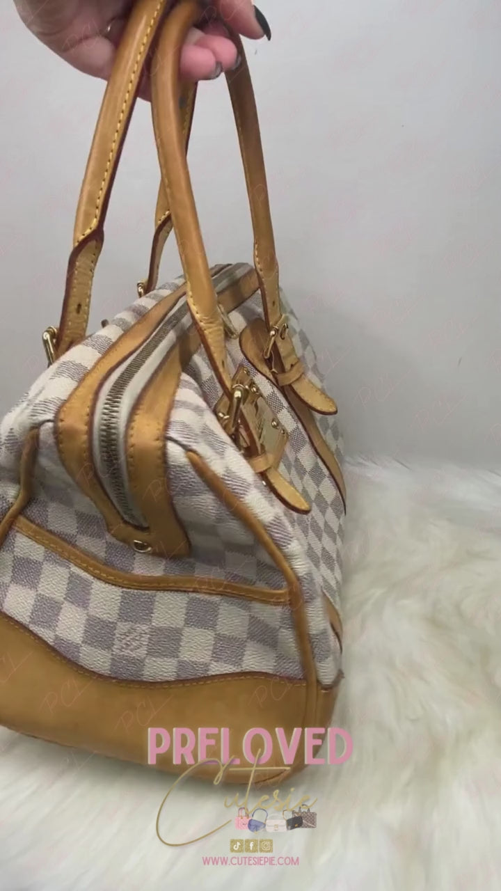 ✅DESCRIPTION: LV Berkeley Bag in Damier Azur Canvas w/ Leather Trim and polished brass plate. Overall Fair condition with signs of wear and aging. DATE CODE WORN!