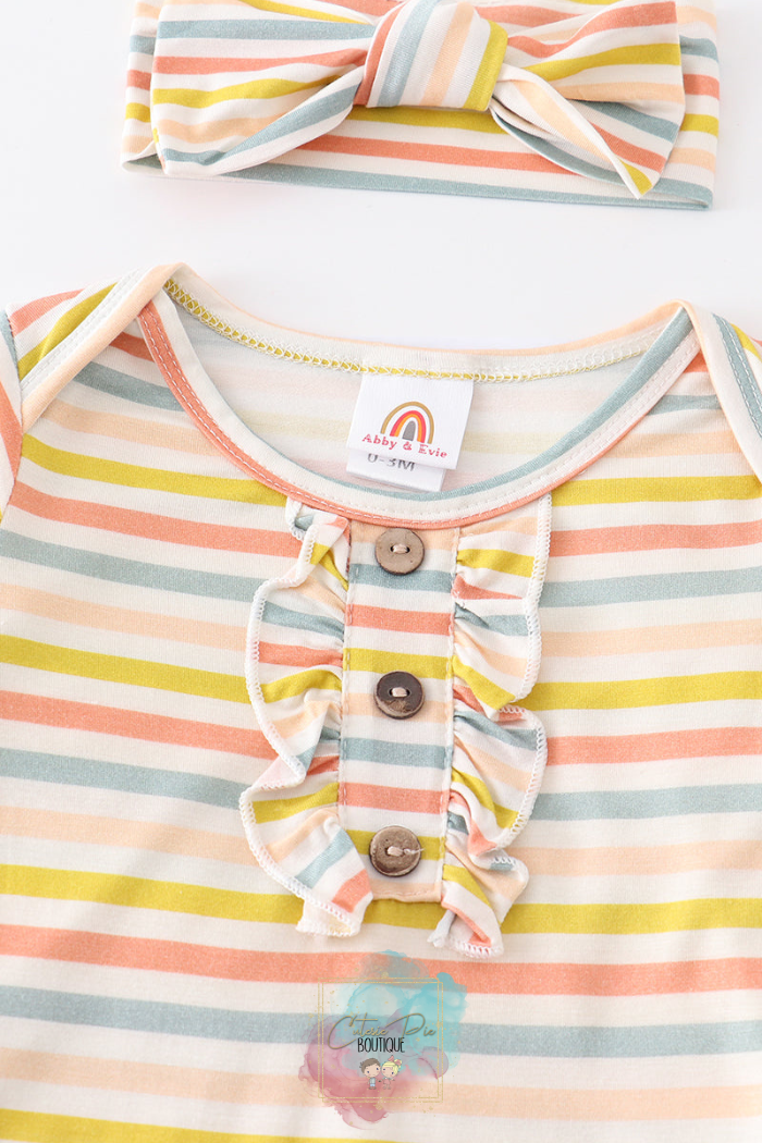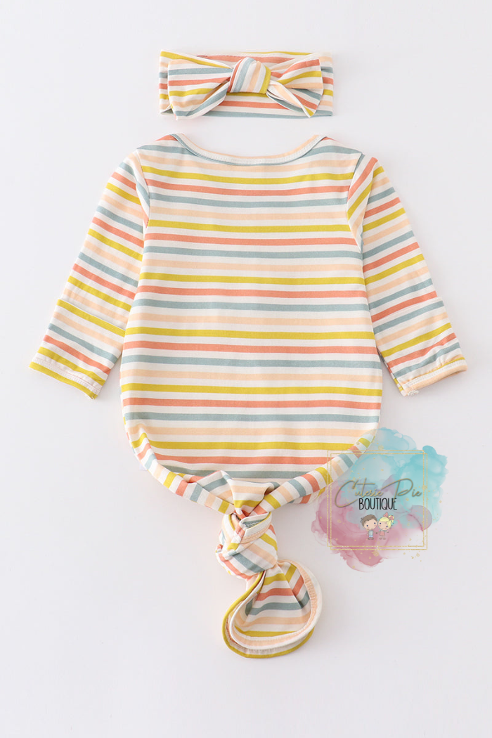 Multicolor Stripe Baby Gown 2PC SET with Headband
