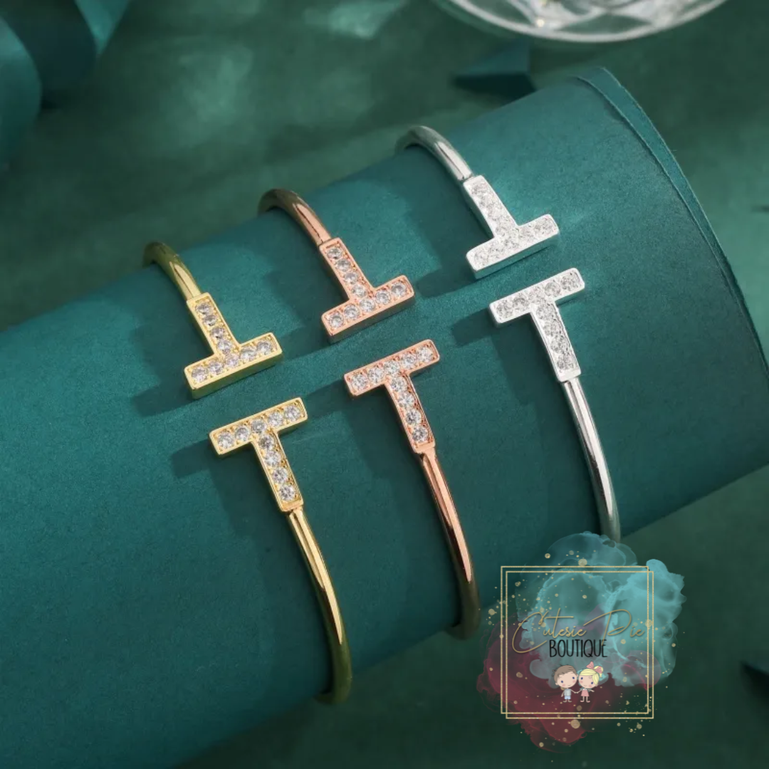 STAINLESS JEWELRY - T Bracelet - 18K Plated w/ Zircon stones